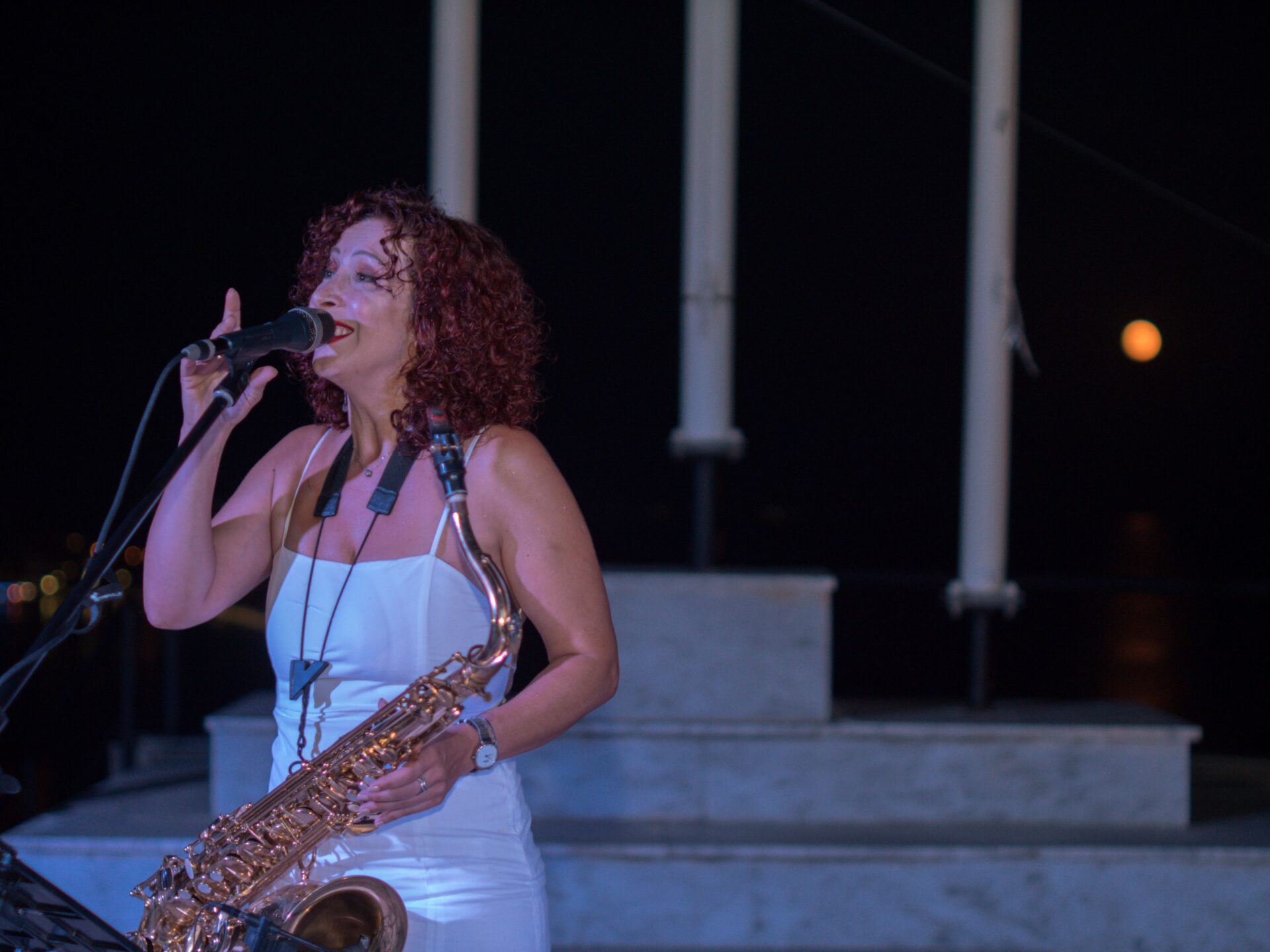 Η Πωλίνα Κατσαβούνη στο σαξόφωνο και στη φωνή και ο Πάρης Τσίρτσης στο πιάνο, αμφότεροι καθηγητές του ΔΩΚ, χάρισαν στους παρευρισκόμενους όμορφες μουσικές στιγμές με αγαπημένα τραγούδια Ελλήνων και ξένων συνθετών με θέμα το φεγγάρι.
