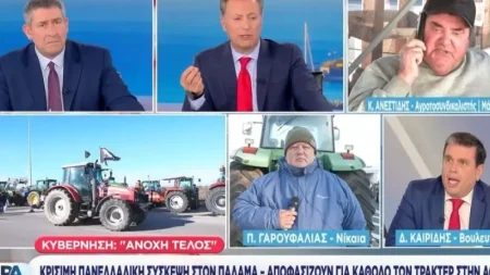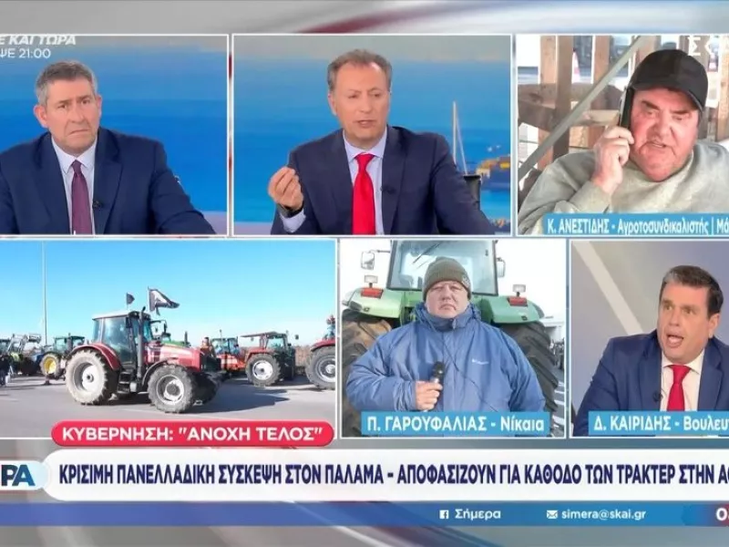 Τσακώθηκαν στον τηλεοπτικό αέρα του ΣΚΑΪ ο βουλευτής της ΝΔ Δημήτρης Καιρίδης και ο αγροτοσυνδικαλιστής των Μαλγάρων Κώστας Ανεστίδης, με αφορμή τόσο τη χθεσινή συνάντηση στο Μέγαρο Μαξίμου ανάμεσα στον Κυριάκο Μητσοτάκη και εκπροσώπους αγροτικών μπλόκων, όσο και την απόφαση του μπλόκου των Μαλγάρων να συνεχίσουν τις κινητοποιήσεις χωρίς να ικανοποιούνται από τα μέτρα που εξήγγειλε η κυβέρνηση.