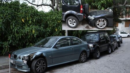 Σύμφωνα με τις πληροφορίες, η ανεξέλεγκτη πορεία του οχήματος είχε ως αποτέλεσμα να πέσει πάνω σε πέντε παρκαρισμένα αυτοκίνητα, προκαλώντες φθορές σε προφυλακτήρες.