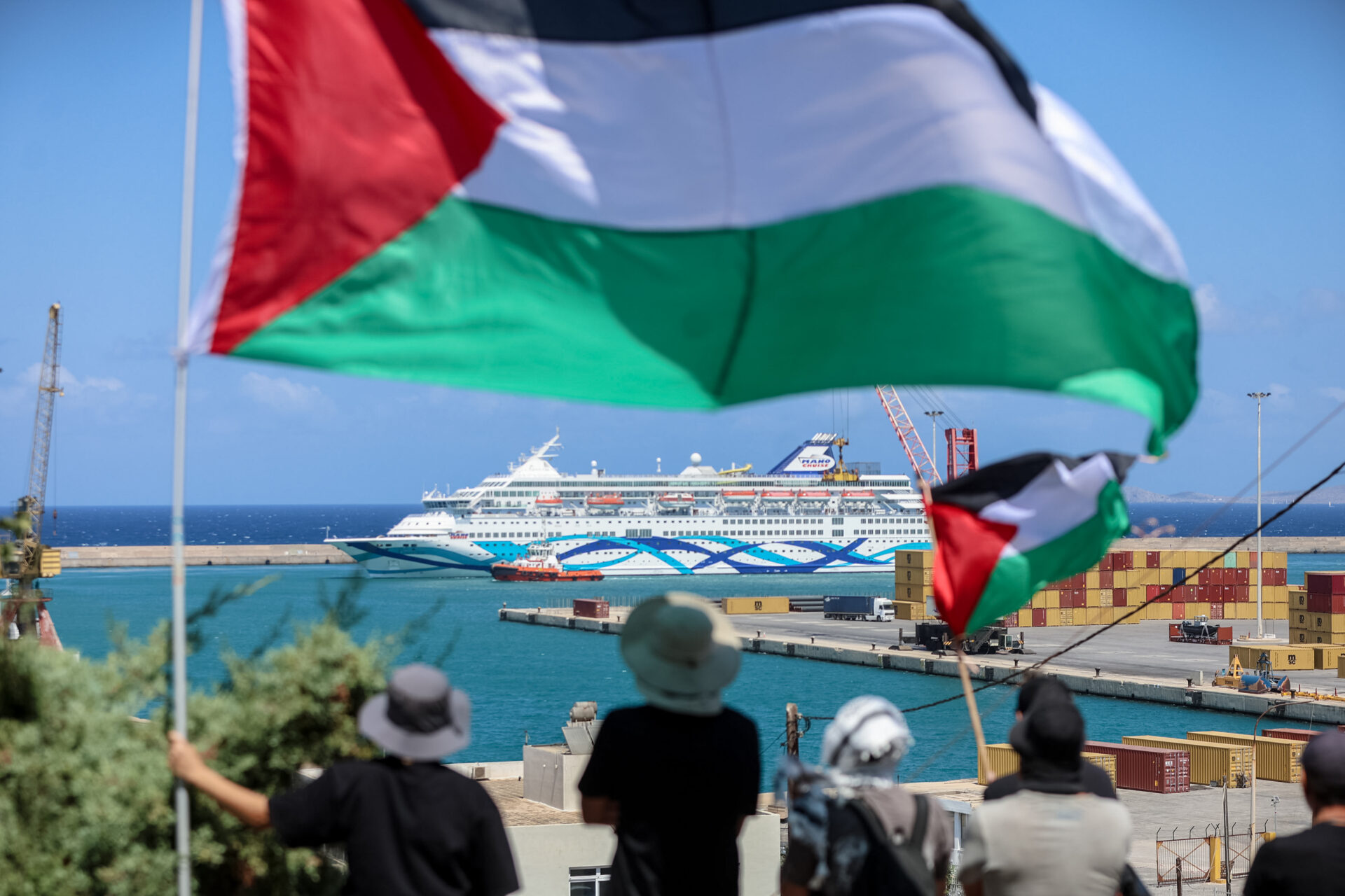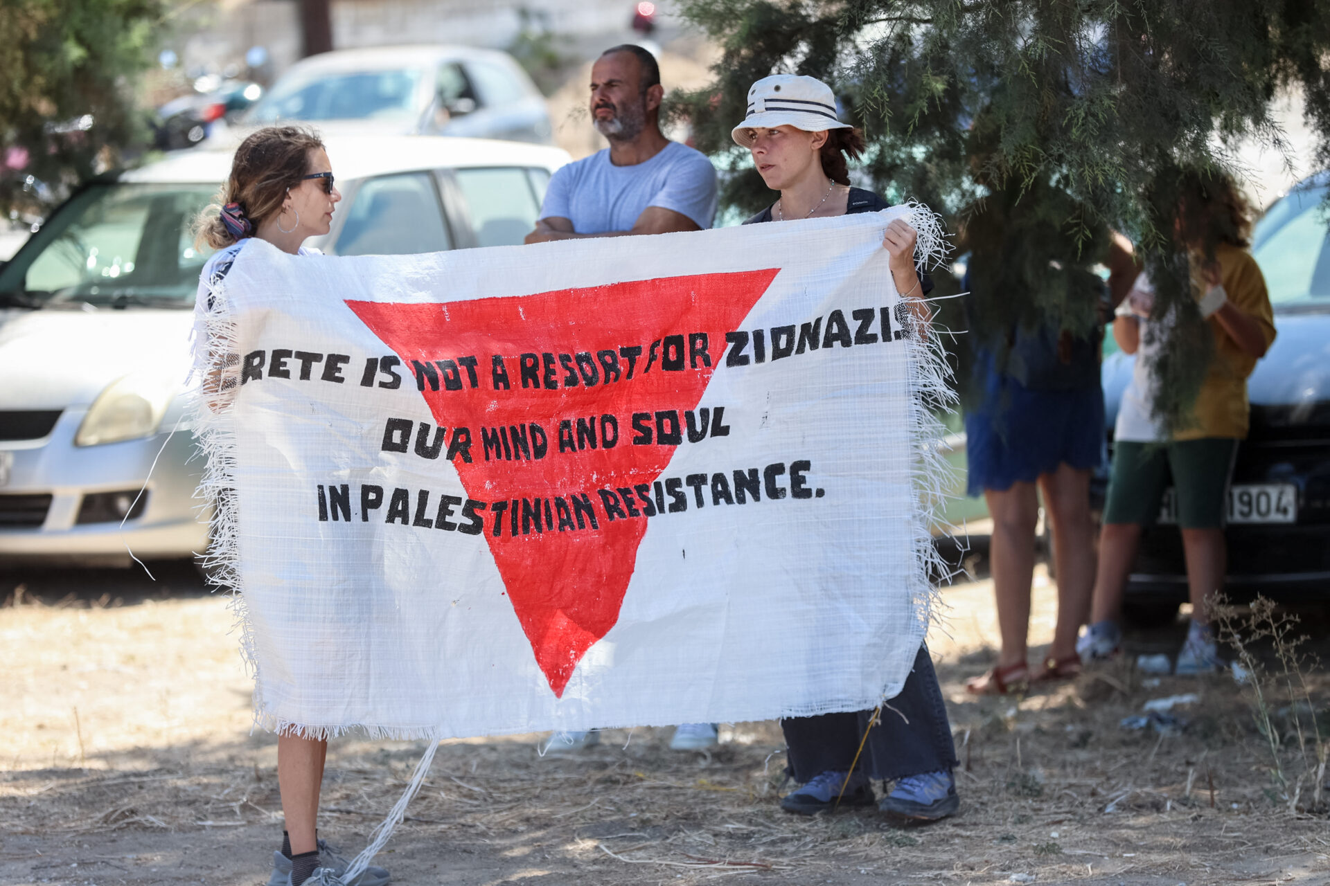 Κρήτη: Με πανό και συνθήματα υπέρ της Παλαιστίνης υποδέχτηκαν το ισραηλινό κρουαζιερόπλοιο