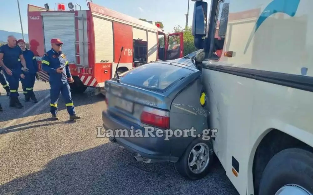 Ο 56χρονος οδηγός του Toyota Corolla έχασε τον έλεγχο στη στροφή, πέρασε το αντίθετο ρεύμα και καρφώθηκε στο μπροστινό μέρος του λεωφορείου ΚΤΕΛ, σύμφωνα με το LamiaReport.