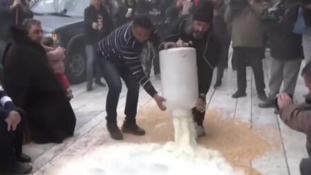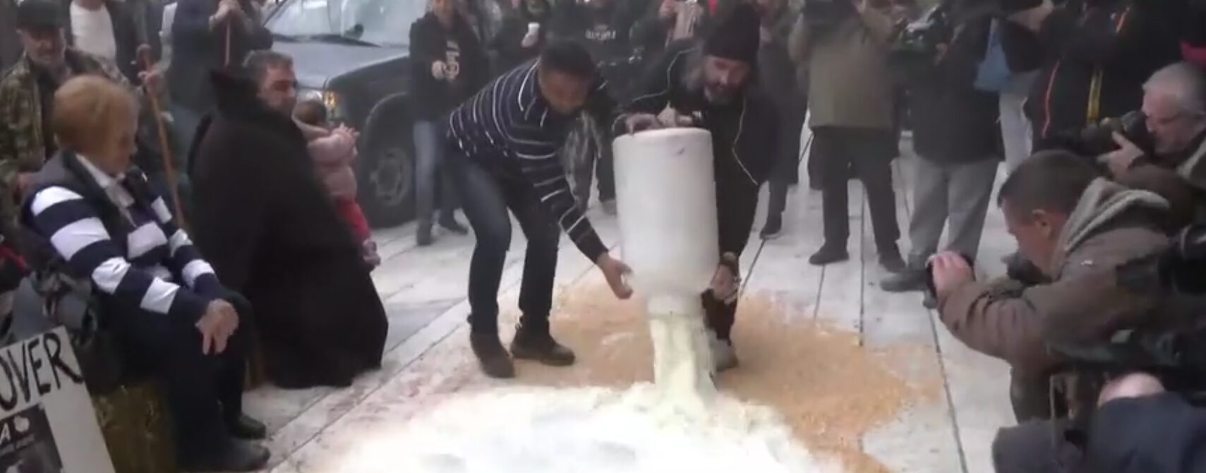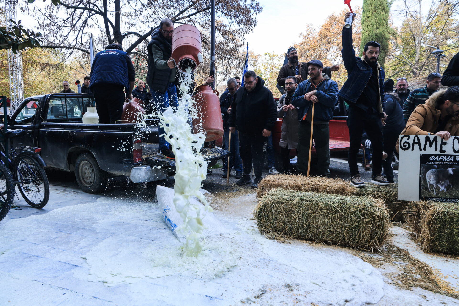 Λάρισα: Κτηνοτρόφοι έχυσαν γάλατα στην κεντρική πλατεία – Βίντεο