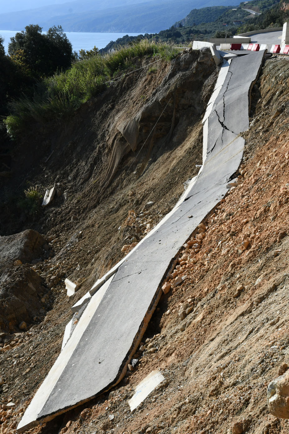 Το έδαφος κάτω από ένα μεγάλο τμήμα του δρόμου υποχώρησε και μαζί του παρασύρθηκε στο κενό το ένα ρεύμα κυκλοφορίας.