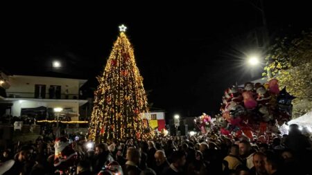 Μαγική στιγμή στον Ταξιάρχη Χαλκιδικής: Φωταγωγήθηκε το χριστουγεννιάτικο δέντρο