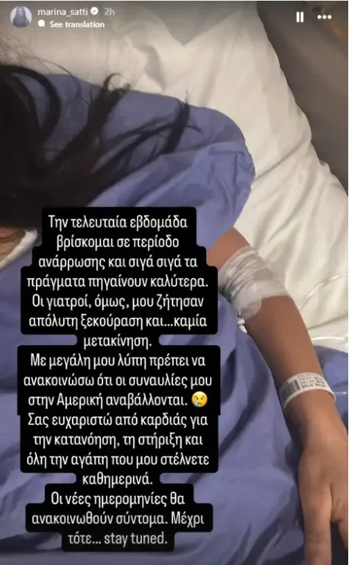 Μαρίνα Σάττι: Η ανάρτηση και το μήνυμα μέσα από το νοσοκομείο