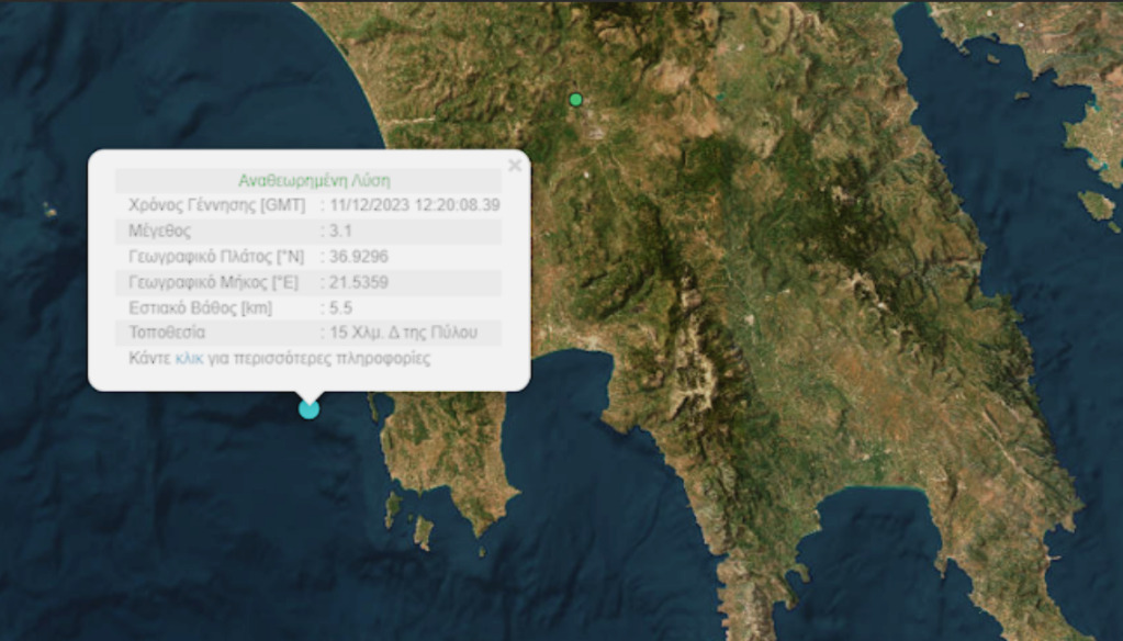 Ένας σεισμός μεγέθους 3,1 βαθμών της κλίμακας Ρίχτερ σημειώθηκε, τη Δευτέρα (11/12), στην Πύλο.