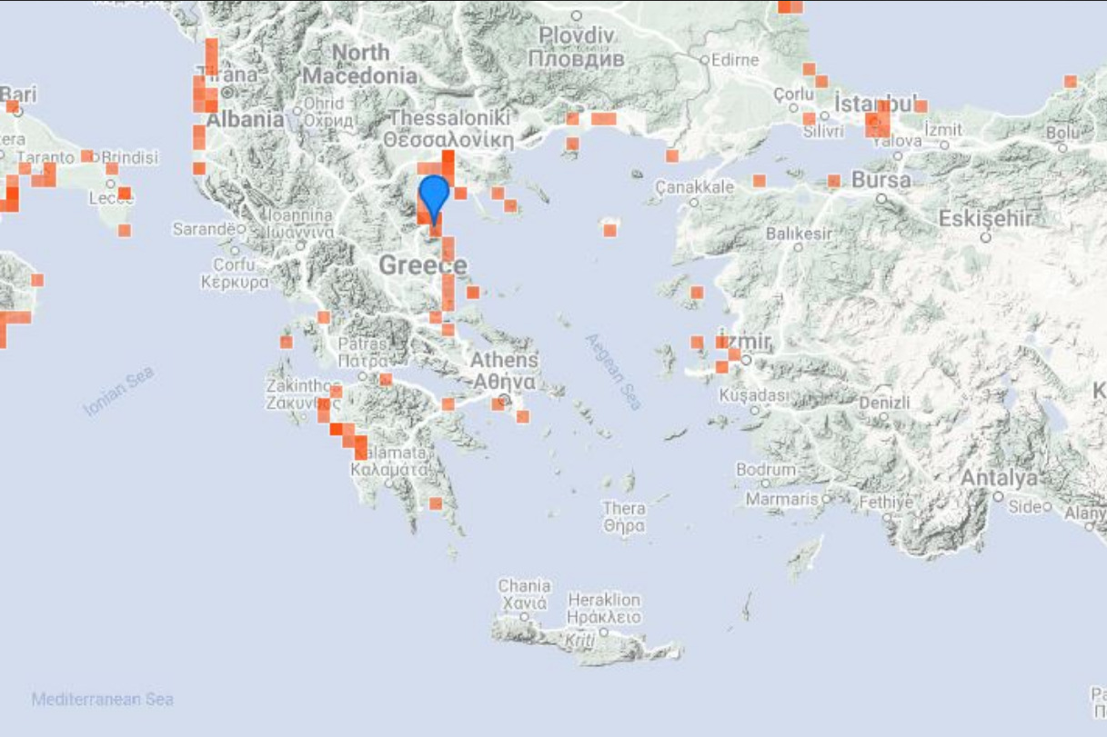 Χάρτης με τις περιοχές όπου πολίτες παρατήρησαν γαλάζιες μέδουσες τα τελευταία χρόνια (inaturalist.org)