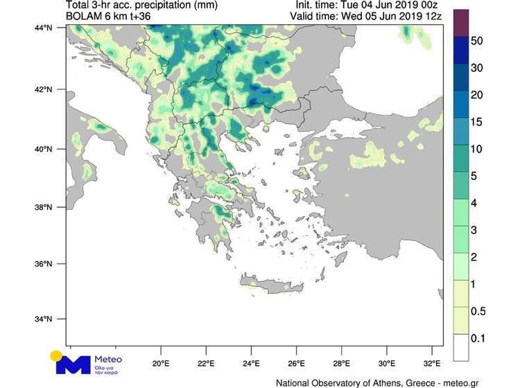 Οι βροχές, οι όμβροι και οι σποραδικές καταιγίδες που εκδηλώνονται κατά τόπους από τις πρωινές ώρες της Τρίτης 4 Ιουνίου κυρίως στα βορειοδυτικά τμήματα της χώρας αναμένεται κατά τη διάρκεια της ημέρας να επηρεάσουν αρκετές ηπειρωτικές περιοχές.