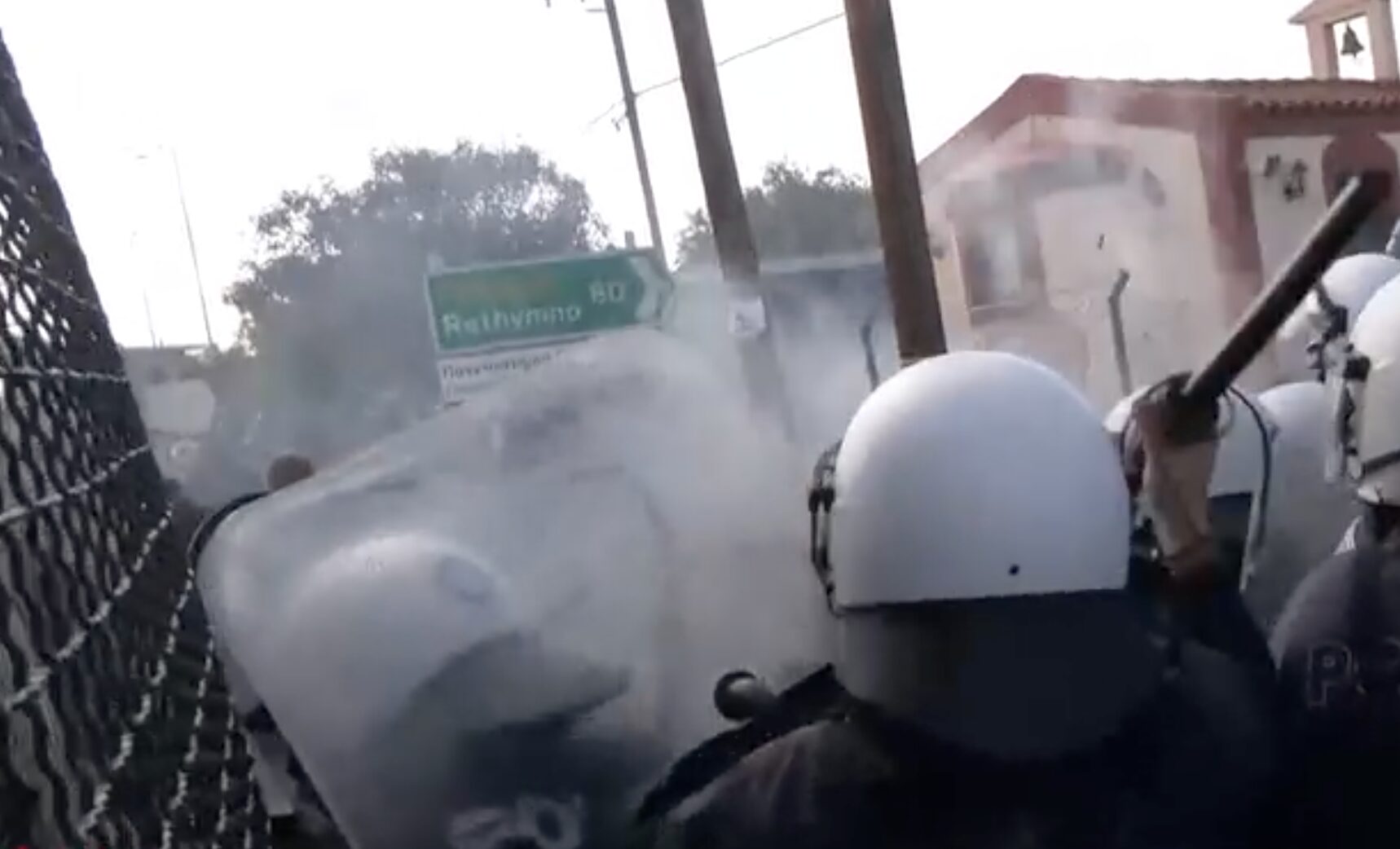Οι αγρότες προσπάθησαν να σπάσουν τον αστυνομικό φραγμό και να αποκλείσουν το αεροδρόμιο στο Ηράκλειο, με τις δυνάμεις να απαντούν με ρίψη χημικών και κρότου λάμψης.