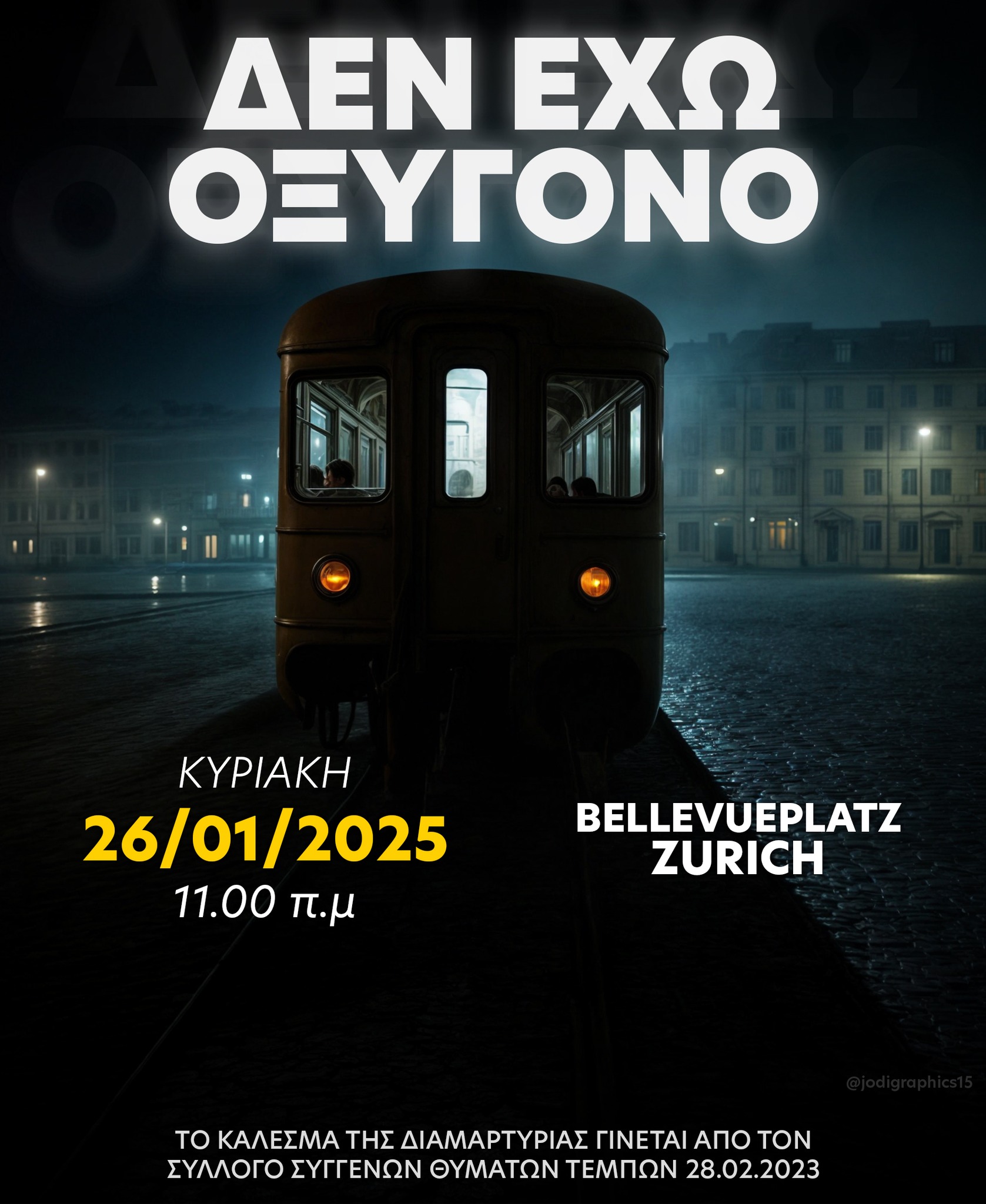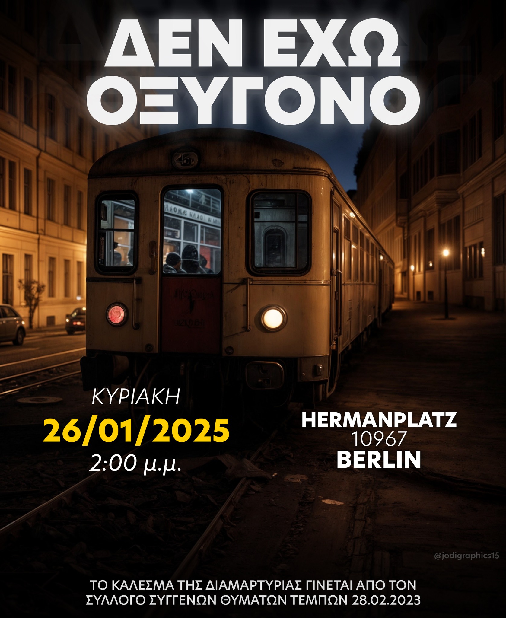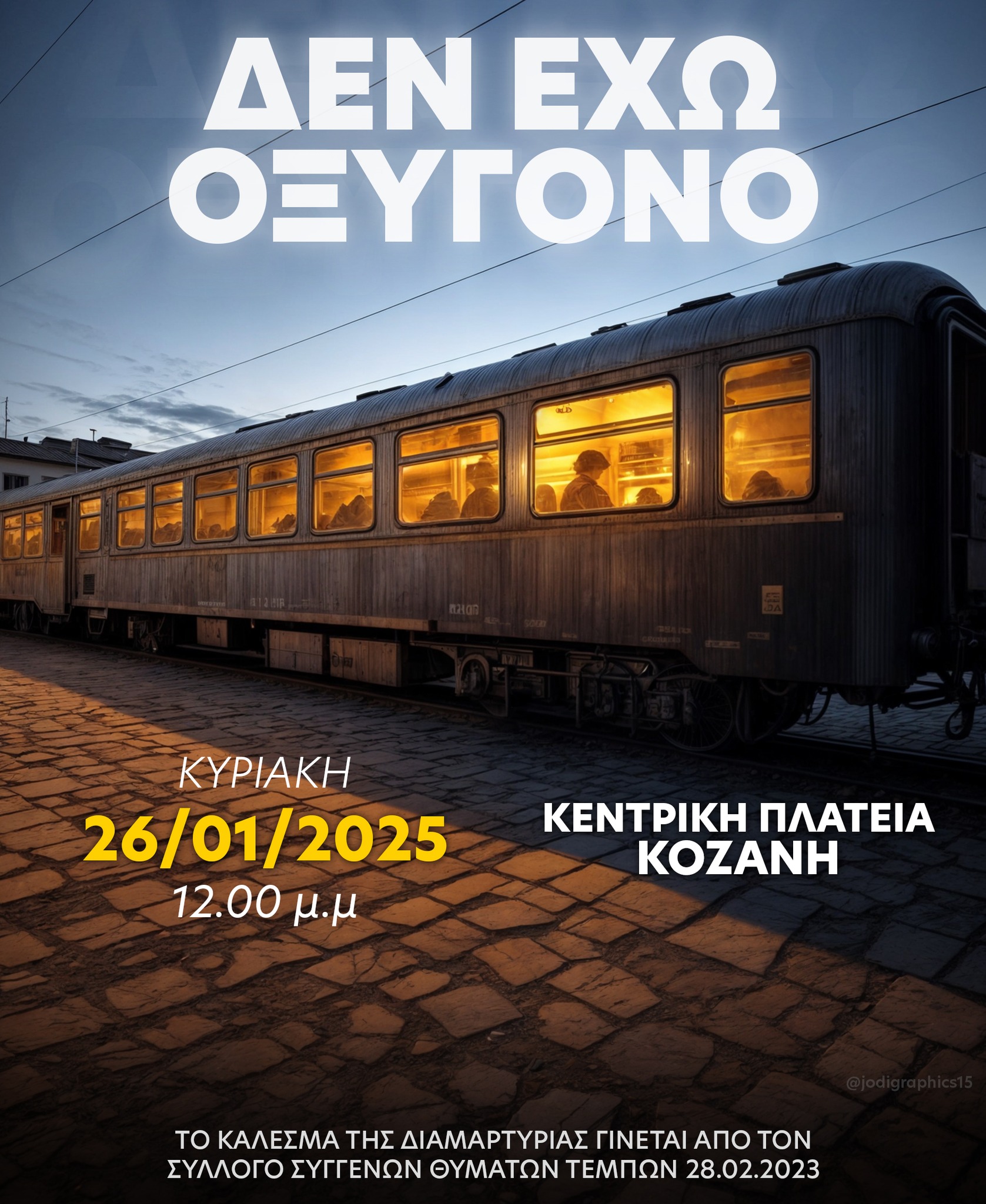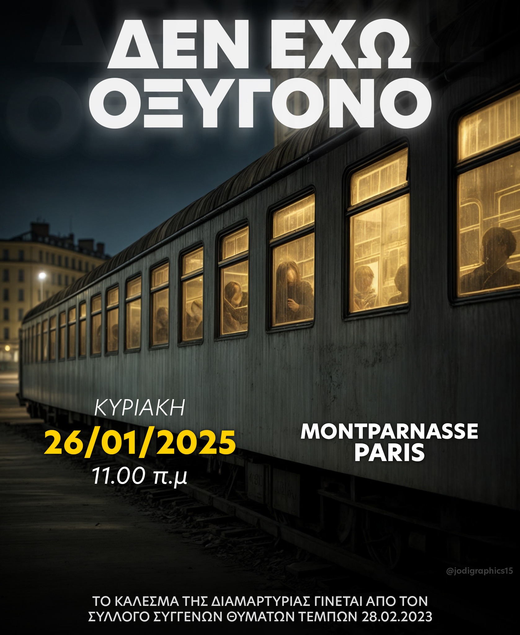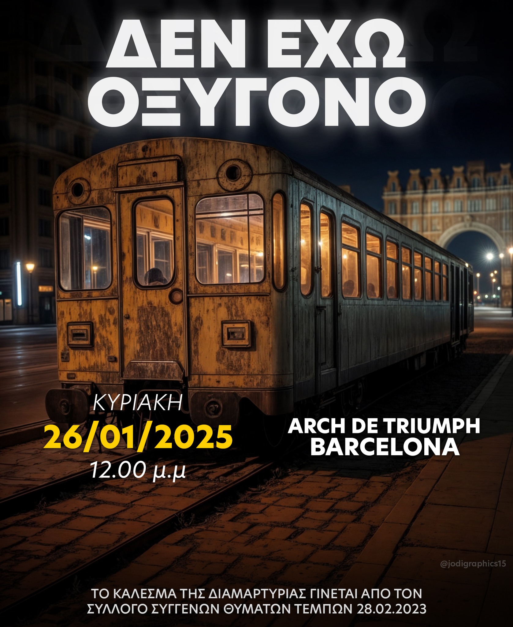 Ξεκινώντας όλα με μία συγκλονιστική αφίσα που κυκλοφόρησε στο διαδίκτυο την περασμένη Πέμπτη, όπου δείχνει ένα βαγόνι τρένου μπροστά από το κτίριο της Βουλής και αναγράφει «ΔΕΝ ΕΧΩ ΟΞΥΓΟΝΟ», συνδέθηκε απόλυτα η μεγάλη συγκέντρωση που ετοιμάστηκε αρχικά για το Σύνταγμα στην Αθήνα από τον «Σύλλογο Πληγέντων Δυστυχήματος Τεμπών» και γρήγορα ενεργοποίησε και άλλες πόλεις (εντός και εκτός Ελλάδας) για να οργανώσουν παρόμοιες συγκεντρώσεις με δεύτερη ανακοίνωση αυτή για τη Θεσσαλονίκη στις 12 το μεσημέρι, με ανάλογη αφίσα, δείχνοντας το βαγόνι του τραίνου μπροστά από την Καμάρα.