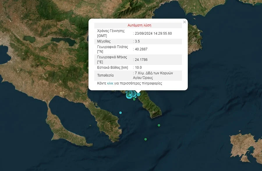 Ακόμη μια σεισμική δόνηση, μεγέθους 3,5 Ρίχτερ, σημειώθηκε το απόγευμα της Δευτέρας 23/09, στο Άγιο Όρος.