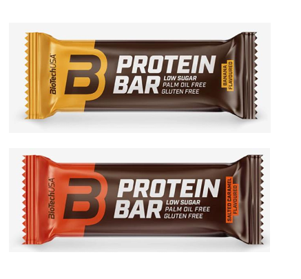 Πρόκειται για δύο μπάρες πρωτεΐνης με εμπορική ονομασία “BioTechUSA” και ονομασίες πώλησης: