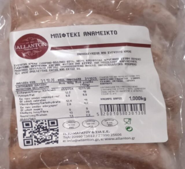 Ο ΕΦΕΤ ανακαλεί κατεψυγμένο μπιφτέκι λόγω σαλμονέλας