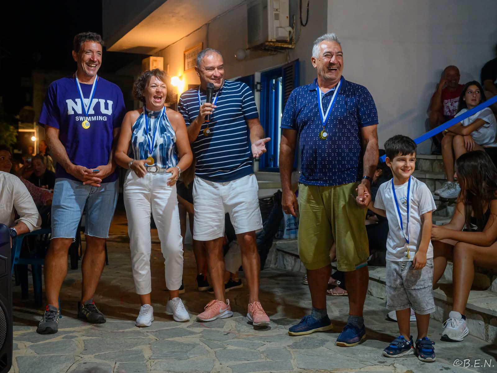 Το ίδιο βράδυ σε μια γιορτινή ατμόσφαιρα, κάτοικοι, αθλητές, συνοδοί, καπετάνιοι και επισκέπτες ένωσαν τις φωνές τους στην πλατεία του νησιού υπό ένα παραρεταμένο χειροκρότημα.