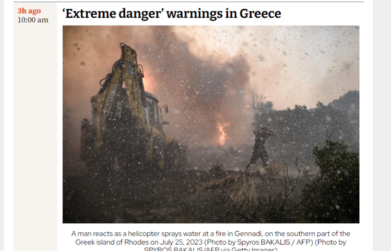 Με live report καλύπτει ο ενημερωτικός ιστότοπος καλύπτει τις φωτιές στην Ελλάδα αλλά και στη Μεσόγειο καθώς και την πτώση του πυροσβεστικού ελικοπτέρου στην Κάρυστο, όσο και την ακύρωση χιλιάδων κρατήσεων από βρετανούς τουρίστες σε Κέρκυρα και Ρόδο, δύο από τους πιο δημοφιλείς προορισμούς στη χώρα.