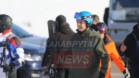 «Αιφνιδιαστική επίσκεψη στα Καλάβρυτα και στο Χιονοδρομικό Κέντρο Καλαβρύτων πραγματοποίησε σήμερα το πρωί, κάτω από άκρα μυστικότητα, ο Πρωθυπουργός Κυριάκος Μητσοτάκης. Με διακριτική παρουσία και ολιγομελή συνοδεία ασφαλείας, έφτασε στο Χιονοδρομικό περίπου εννέα το πρωί. Λίγο πριν την άφιξή του ενημερώθηκε ο διευθυντής του Κέντρου, κ. Αλέξης Άγριος, ο οποίος και τον υποδέχθηκε.
