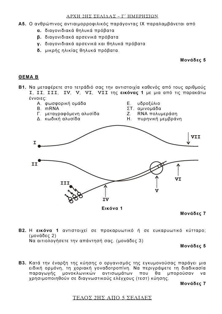 Ακολουθούν τα θέματα στη Βιολογία (προσανατολισμού) των ημερησίων ΓΕΛ