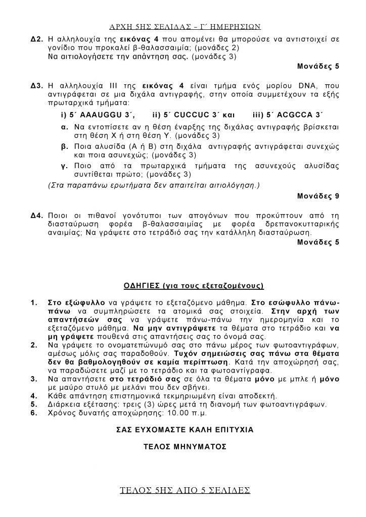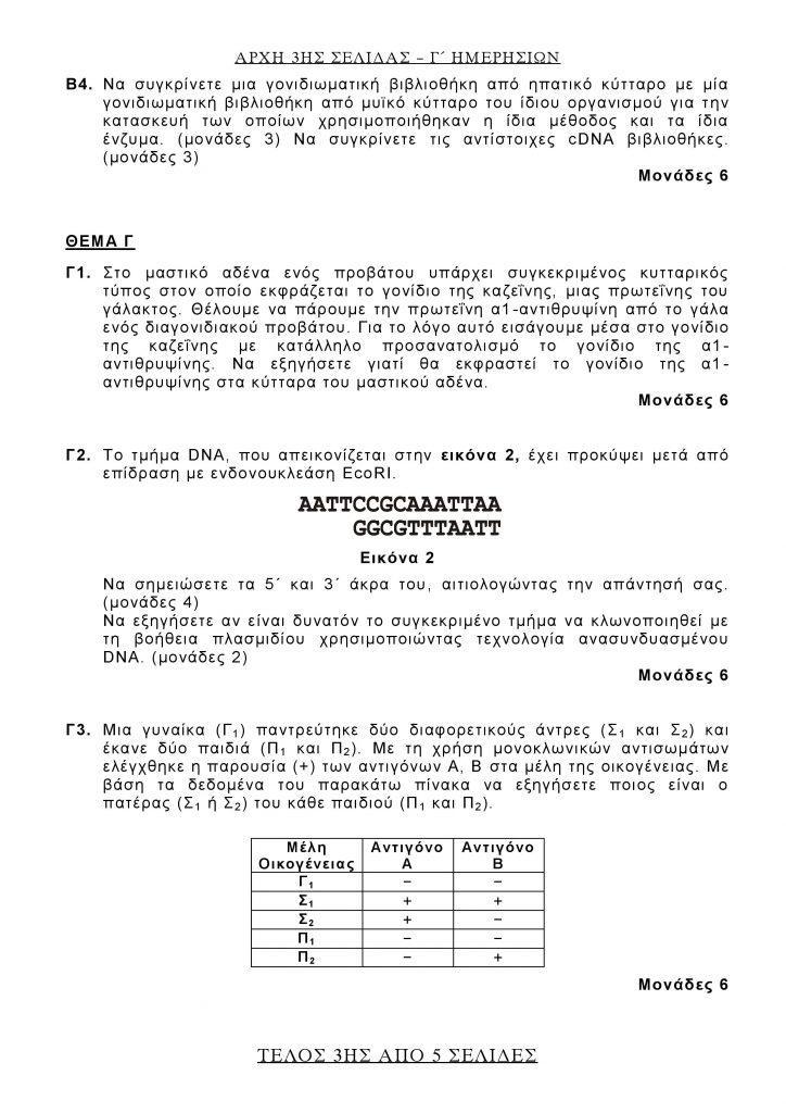Aκολουθούν αναλυτικά τα Θέματα στη Βιολογία (γενικής παιδείας) των ημερήσιων ΓΕΛ