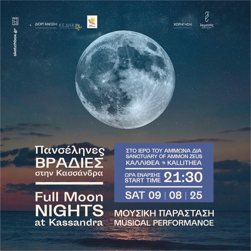 «Η παράσταση ξεκινά στις 21:30 και υπόσχεται να μετατρέψει τη νύχτα της πανσελήνου σε μια εμπειρία ιστορίας, μουσικής και μυσταγωγίας» αναφέρει στην ανακοίνωση του ο Δήμος Κασσάνδρας.