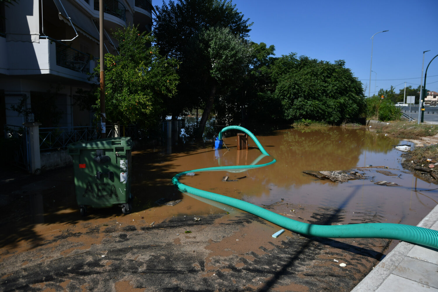 Μεγάλα τμήματα της συνοικίας, όπως και μέρος της κεντρικής οδού Σωκράτους, παραμένουν «λίμνη».