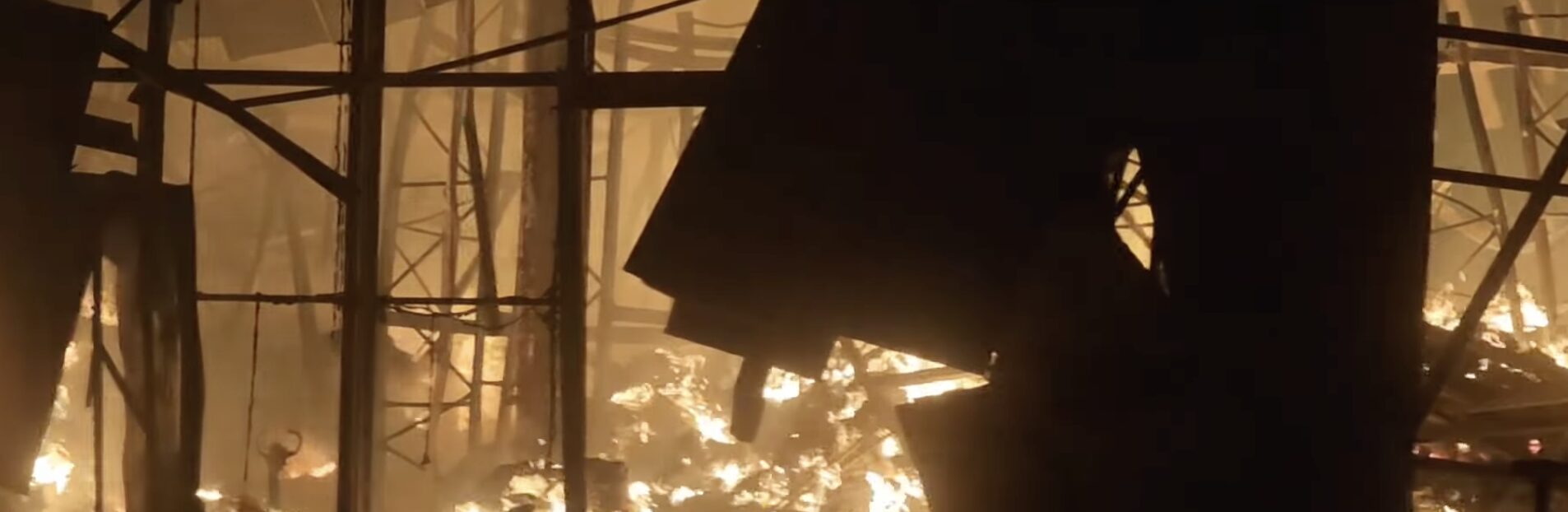 Με την έκρηξη άνοιξαν τα πλαϊνα πάνελ και κατέπεσε μέρος της σκεπής, ενώ έπιασε αμέσως φωτιά το κτίριο.