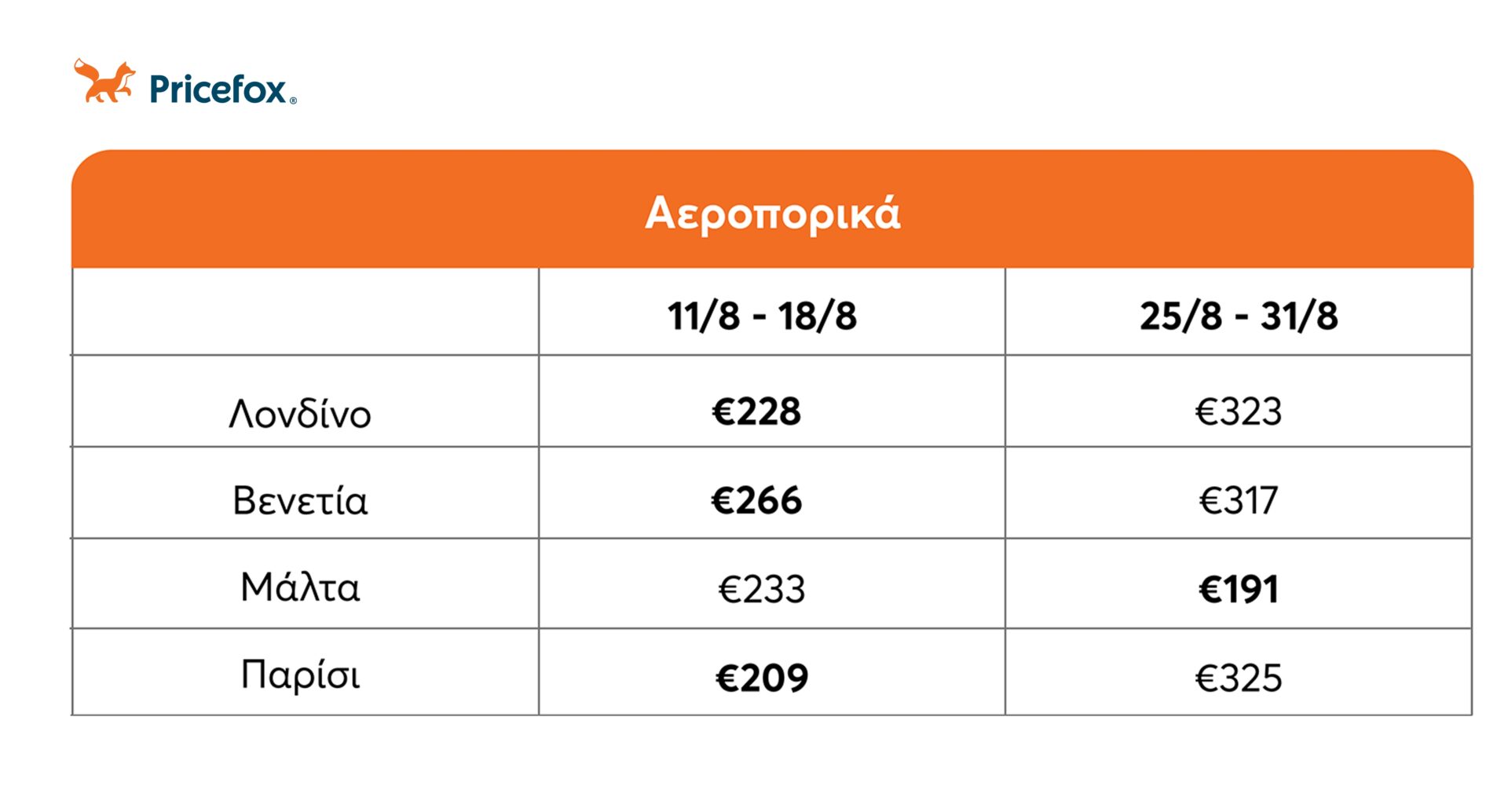 Το Pricefox σύγκρινε φέτος προορισμούς, εισιτήρια και περιόδους ώστε να ξοδέψεις τα χρήματά σου σε δραστηριότητες και απολαύσεις κι όχι στην μετακίνησή σου.