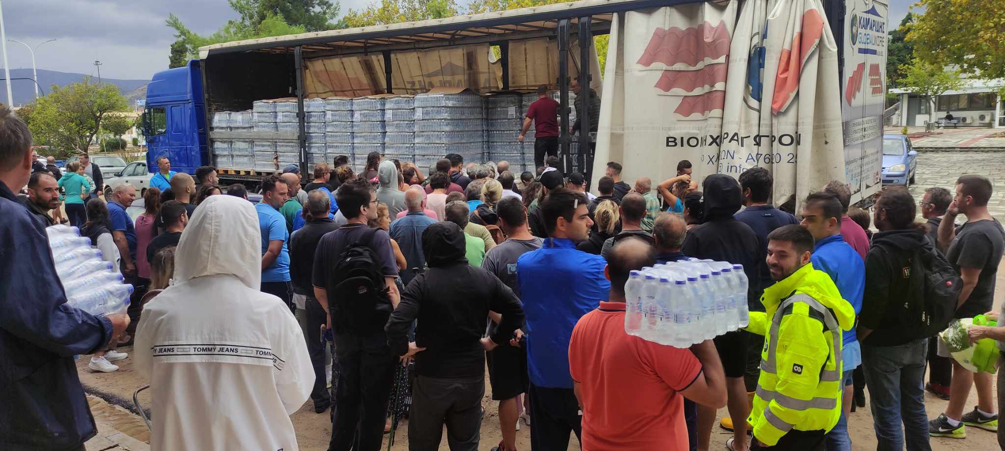 Η διακοπή της υδροδότησης, αλλά και η παντελής έλλειψη πόσιμου νερού έχουν ως αποτέλεσμα να «εξαφανιστούν» τα μπουκαλάκια νερού από τα μαγαζιά. Ετσι, ο Δήμος Βόλου αλλά και αρκετοί εθελοντές μοιράζουν στον κόσμο μπουκαλάκια με νερό.