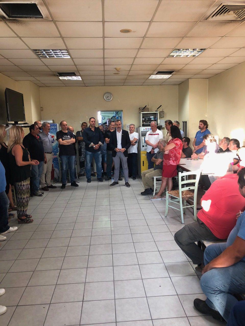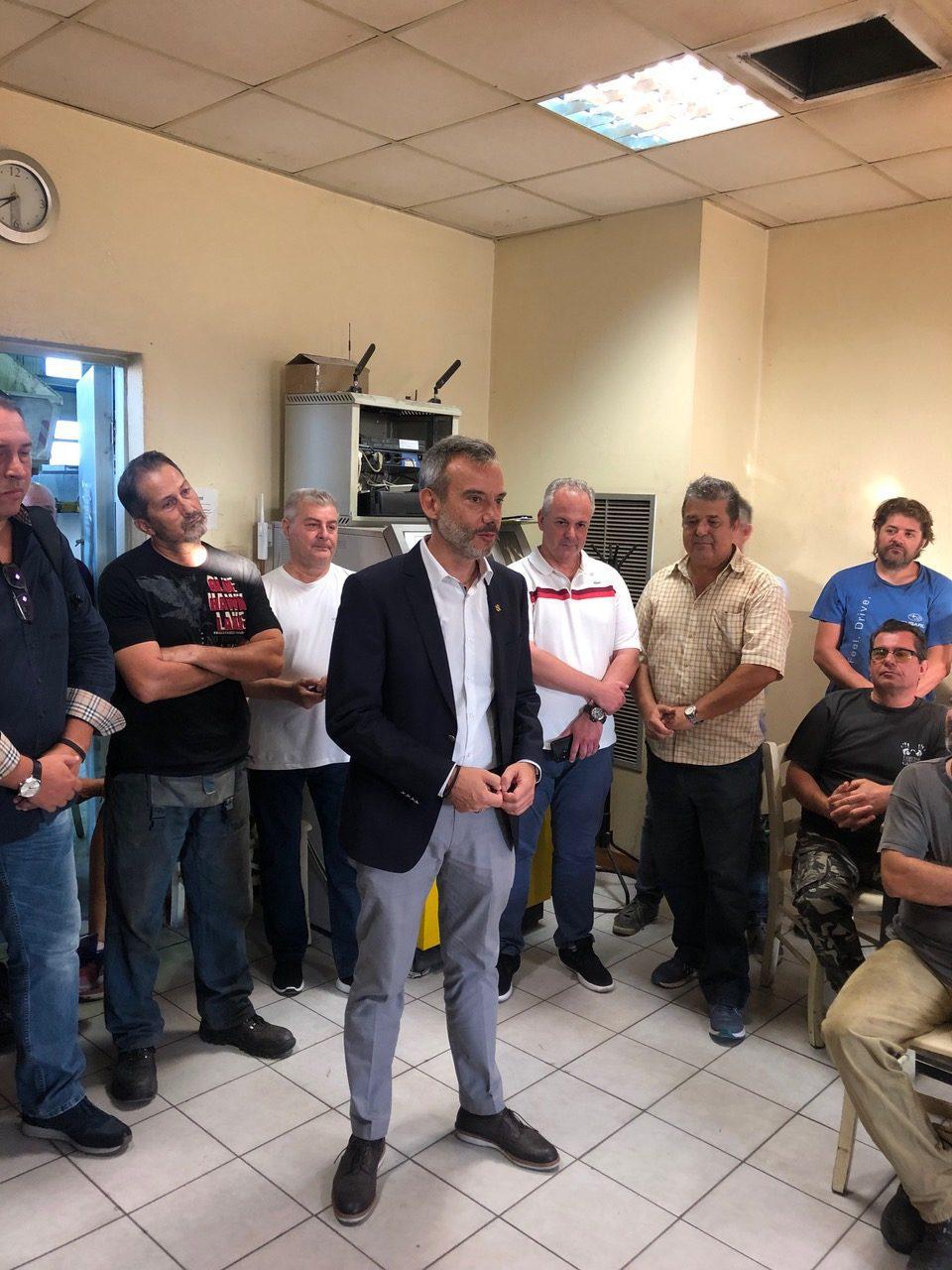 Ο κ. Κωνσταντίνος Ζέρβας συνοδευόμενος από τον Γενικό Γραμματέα του Δήμου, κ. Ευθύμιο Φωτόπουλο και τον εντεταλμένο δημοτικό σύμβουλο με αρμοδιότητες καθαριότητας και ανακύκλωσης, κ. Νίκο Ζεϊμπέκη, κατέφθασε νωρίς το πρωί στις 7.00 πμ στο χώρο και συνομίλησε με τους υπαλλήλους.