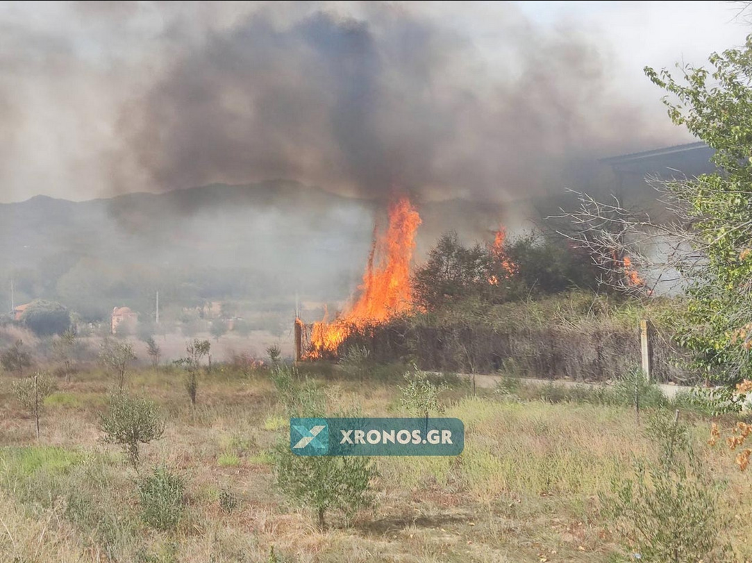 Η φωτιά πιθανώς ξεκίνησε από αποθήκη, η οποία όπως βλέπετε στις φωτογραφίες έχει καεί, ενώ από τις φλόγες έπεσε επίσης κολώνα ηλεκτρισμού. Η περιοχή είναι κυρίως αγροτική, ωστόσο η φωτιά μπορεί να ξεφύγει προς Μίσχο.