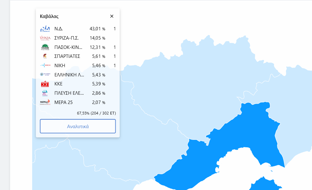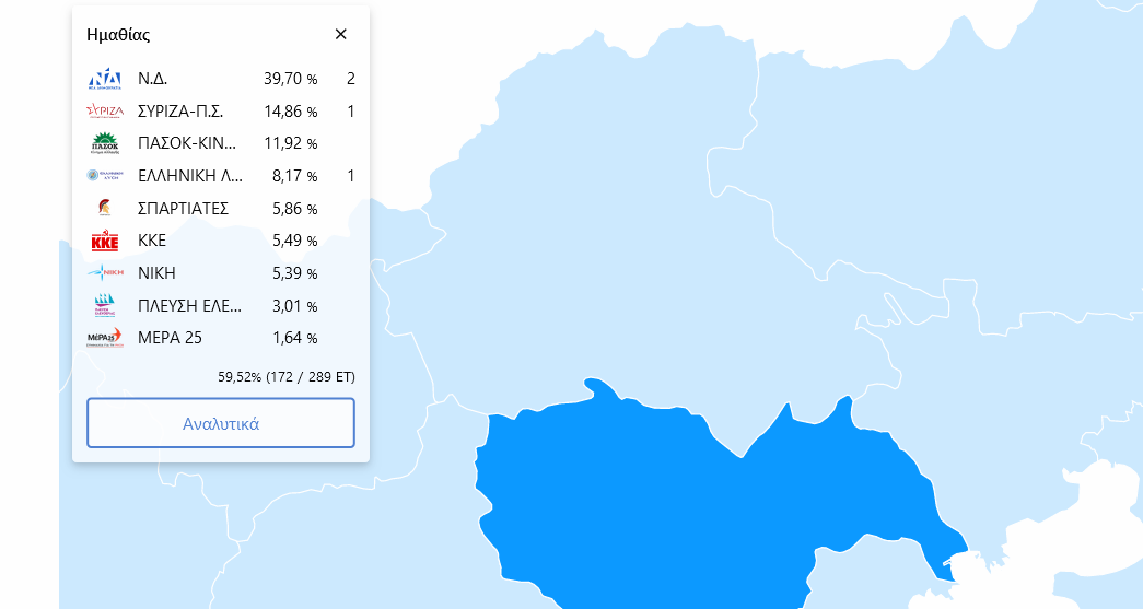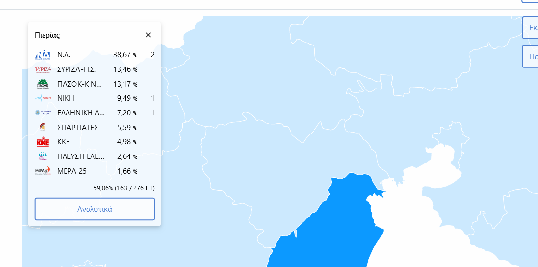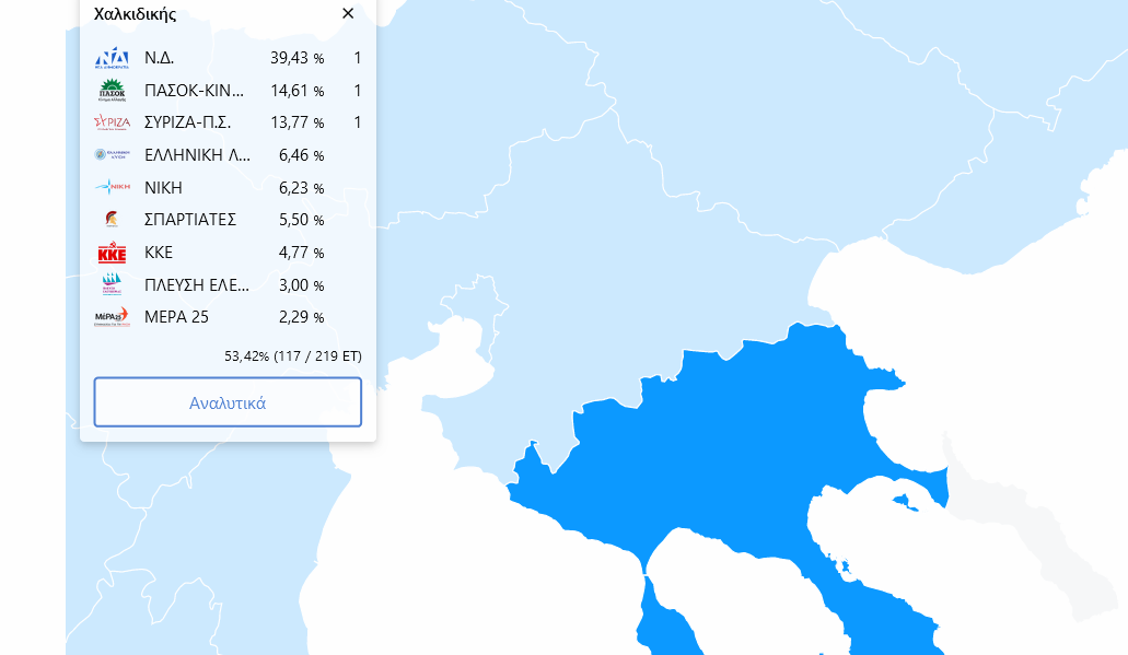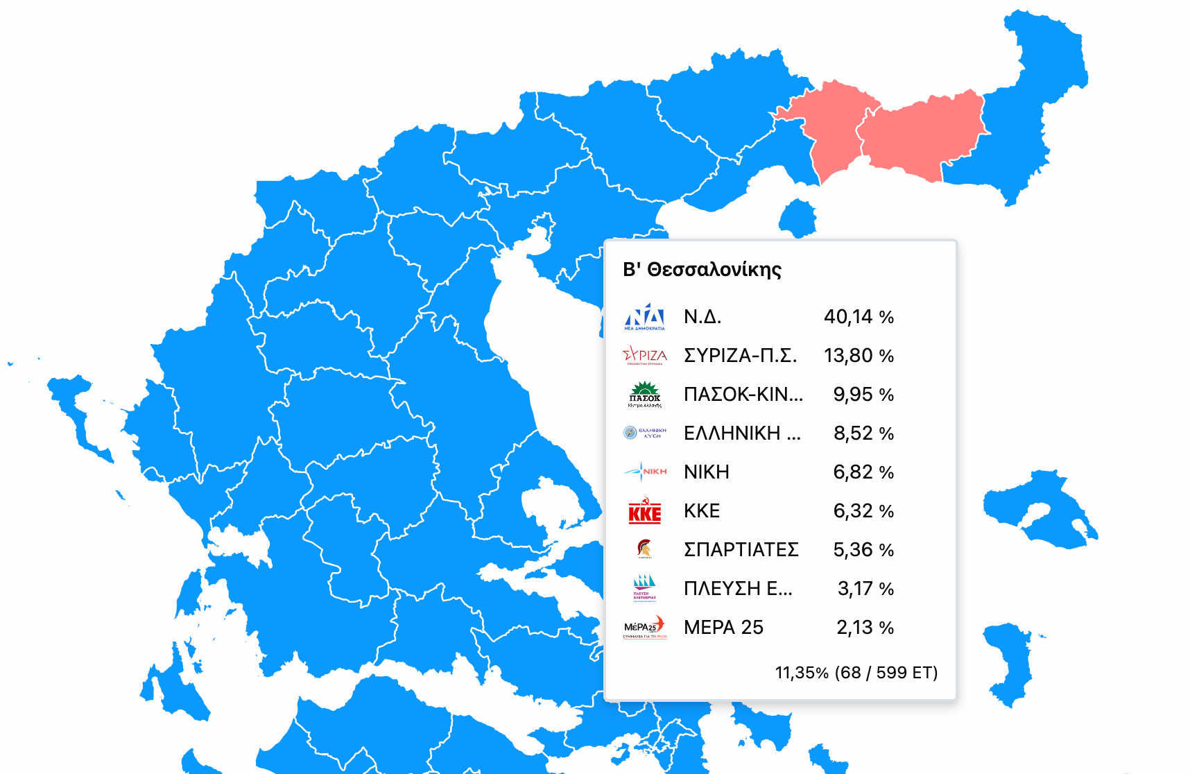 Ενδεικτικά είναι τα αποτελέσματα που μέχρι στιγμής καταγράφονται στους νομούς της Βόρειας Ελλάδας: