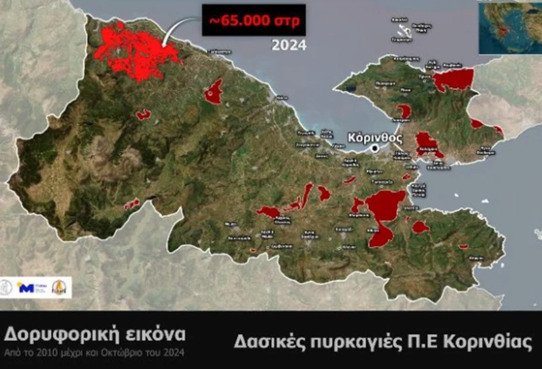Η πρόσφατη δασική φωτιά στην Κορινθία κατέκαψε περίπου 65.000 στρέμματα μέχρι την 1η Οκτωβρίου 2024