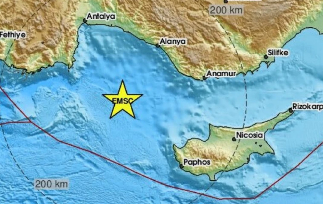 Το επίκεντρο είναι περίπου 108 χιλιόμετρα νότια της Αλάνια της Τουρκίας, αναφέρει το Ευρωμεσογειακό Κέντρο.