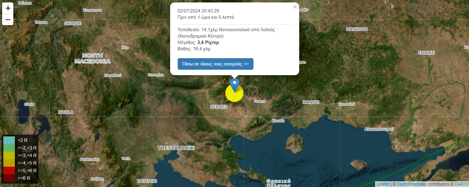 Σεισμός 3,6 Ρίχτερ 14,1χλμ Νοτιοανατολικά από Λαϊλιάς (Χιονοδρομικό Κέντρο) στις 02/07/2024 20:43:25