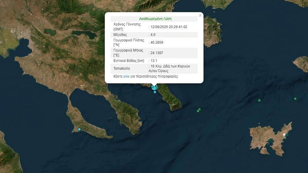 Σεισμός μεγέθους 4 Ρίχτερ σημειώθηκε στο Άγιο Όρος το βράδυ της Τρίτης.