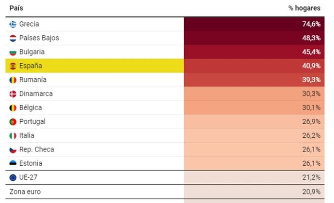 Η Ισπανία στην οποία γίνεται πολύς λόγος για το κόστος κατοικίας στο δημόσιο διάλογο είναι μόλις 4η με 40,9%.