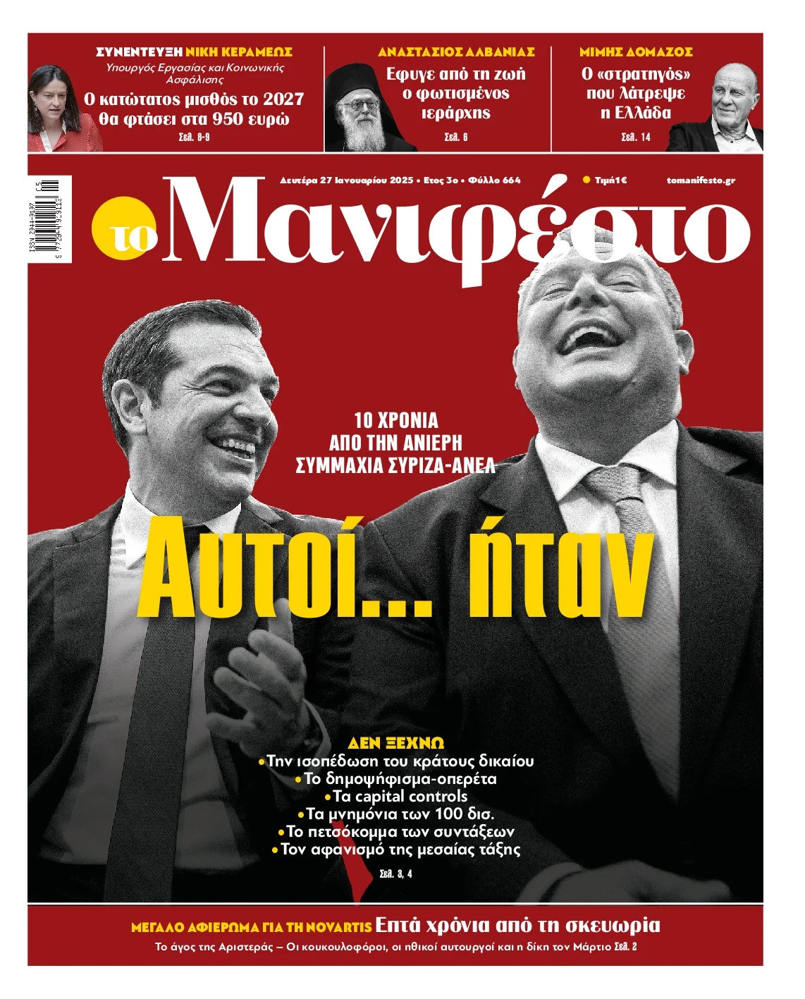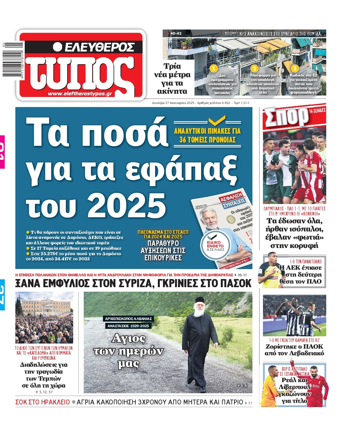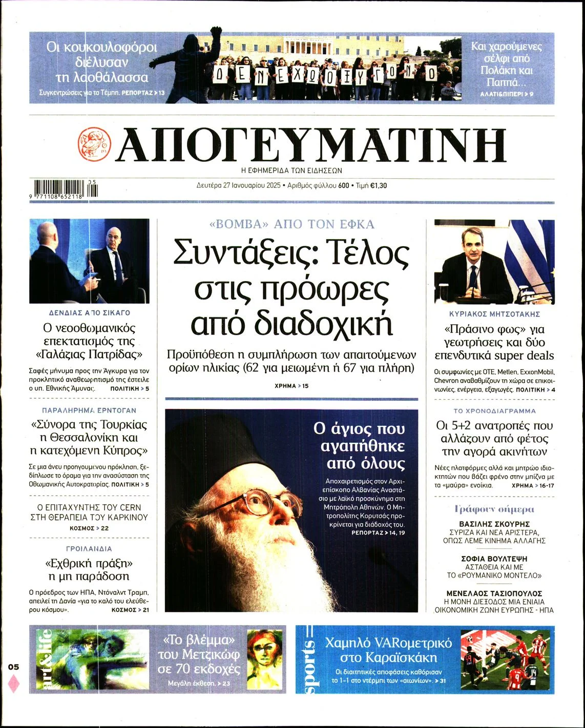 Δείτε τα σημερινά πρωτοσέλιδα (27/01) των εφημερίδων (με αλφαβητική σειρά):