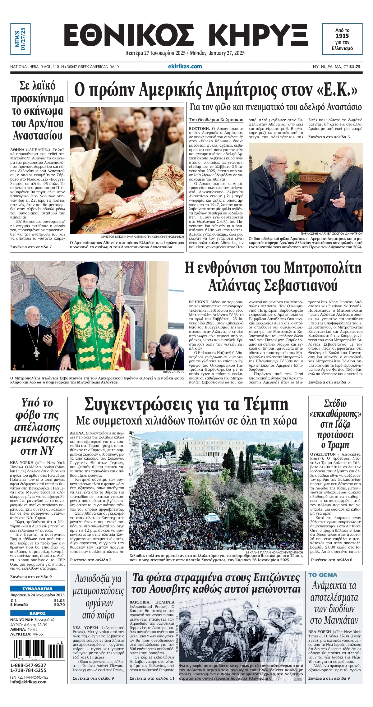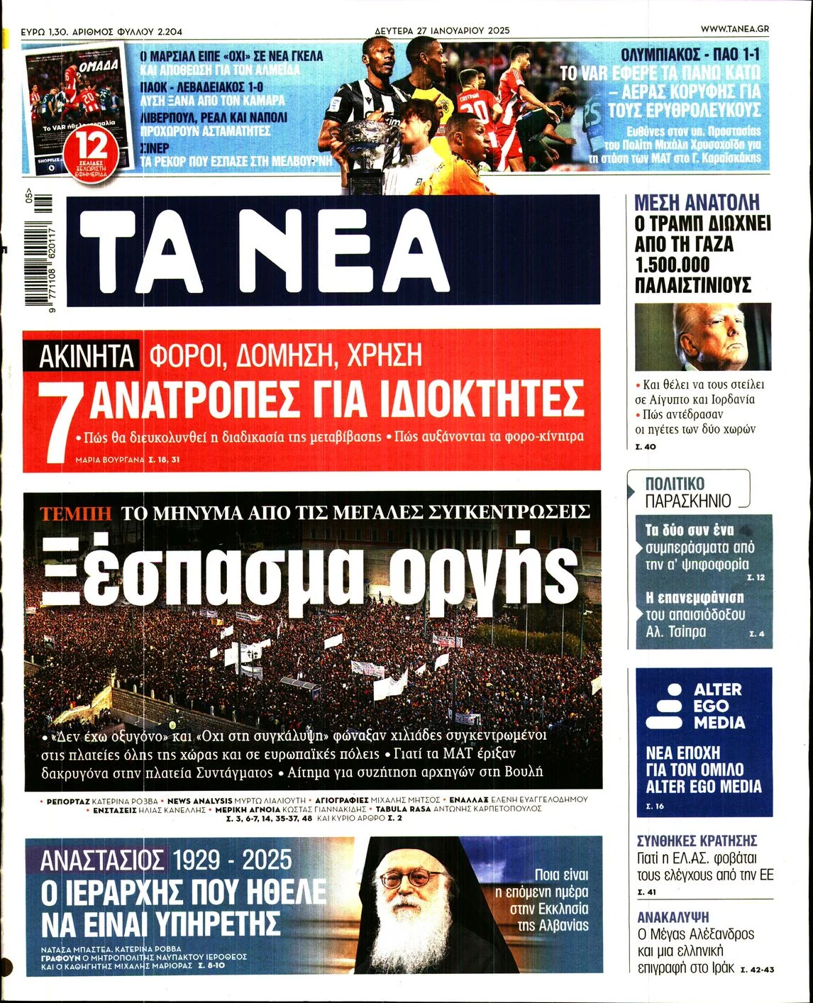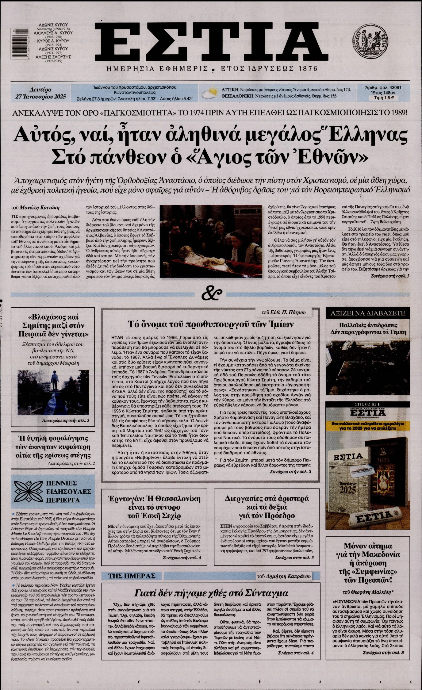 Δείτε τα σημερινά πρωτοσέλιδα (27/01) των εφημερίδων (με αλφαβητική σειρά):