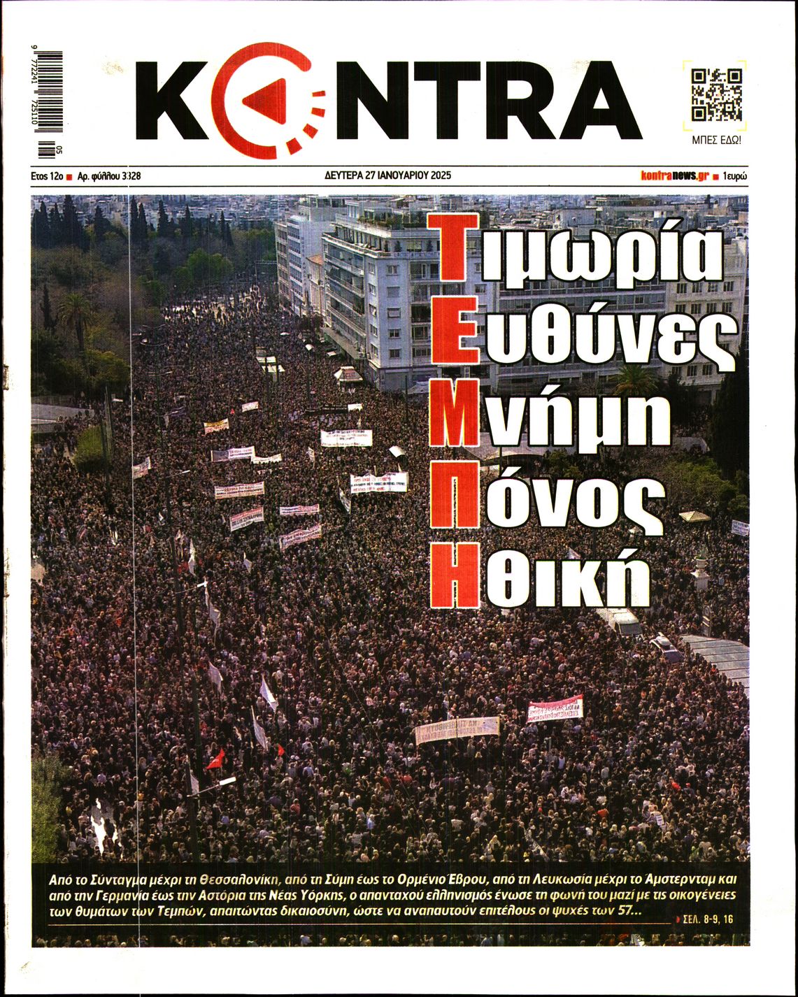 Την Κυριακή, οι δρόμοι και η πλατείες ολόκληρης της χώρας, κατακλύστηκαν από δεκάδες χιλιάδες ανθρώπους, που ζητούν το αυτονόητο· Καμία συγκάλυψη στο έγκλημα των Τεμπών και δικαίωση για τα 57 θύματα -στην πλειοψηφία τους παιδιά- που έχασαν τη ζωή τους το τελευταίο βράδυ του Φεβρουαρίου, πριν δύο χρόνια, ενώ επέβαιναν στις δύο αμαξοστοιχίες που συγκρούστηκαν.