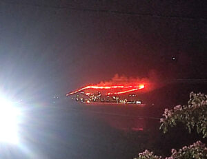 Τώρα τις πρωινές ώρες έχει φύγει από αυτή την πλευρά κι έχει πάει ανατολικότερα, στο χωριό Καλέντζι. Το χωριό δεν κινδυνεύει απ’ ότι με διαβεβαίωσε ο πρόεδρος του χωριού, γιατί εκεί βρίσκονται πυροσβεστικά οχήματα», δήλωσε.