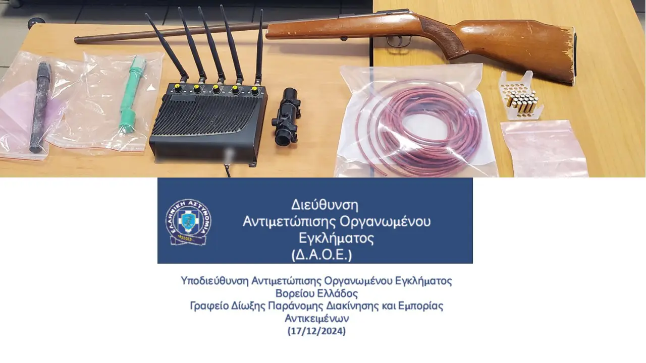 Η Υποδιεύθυνση Αντιμετώπισης Οργανωμένου Εγκλήματος Βορείου Ελλάδος συνέλαβε έναν 57χρονο ημεδαπό, ο οποίος βρέθηκε να έχει στην κατοχή του, σε οικόπεδο ιδιοκτησίας του, μία οβίδα στρατιωτικού τύπου καθώς και εξαρτήματα για τη δημιουργία Αυτοσχέδιου Εκρηκτικού Μηχανισμού (Α.Ε.Μ.).