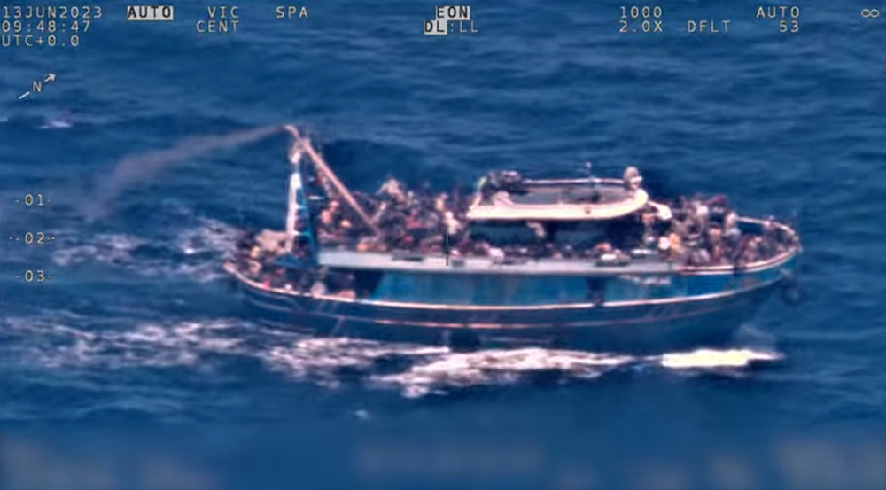 Στις 13 Ιουνίου, η Ιταλική Ακτοφυλακή ειδοποίησε τις ελληνικές αρχές και την υπηρεσία προστασίας των συνόρων της Ευρωπαϊκής Ένωσης, Frontex, για ένα επερχόμενο σκάφος σε κίνδυνο. Το Λιμενικό Σώμα − Ελληνική Ακτοφυλακή ανακοίνωσε ότι αεροσκάφη της Frontex και δύο εμπορικά πλοία εντόπισαν το σκάφος να πλησιάζει βόρεια με υψηλές ταχύτητες, προκαλώντας την αποστολή περισσότερων αεροσκαφών και θαλασσίων σκαφών. Προσφορές για βοήθεια έγιναν στο πλοίο, αλλά απορρίφθηκαν, σύμφωνα με το Λιμενικό. To Λιμενικό έδωσε στη δημοσιότητα αεροφωτογραφίες που δείχνουν τα υπερφορτωμένα καταστρώματα του σκάφους ώρες πριν βυθιστεί. Σε δηλώσεις του, ο εκπρόσωπος τύπου υποστήριξε ότι το σκάφος και οι επιβάτες του είχαν αρνηθεί τη βοήθεια επειδή ο προορισμός τους ήταν η Ιταλία και έτσι τα λιμενικά σκάφη έμειναν πίσω, σε περίπτωση που χρειαζόταν βοήθεια.