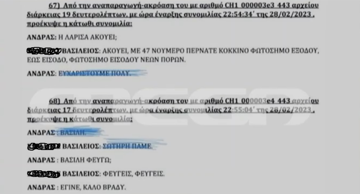 Η συνομιλία στο νούμερο 68 αφορά σε συνομιλία με μηχανοδηγό τοπικής αμαξοστοιχία και όχι με τον μηχανοδηγό της «μοιραίας» αμαξοστοιχίας.