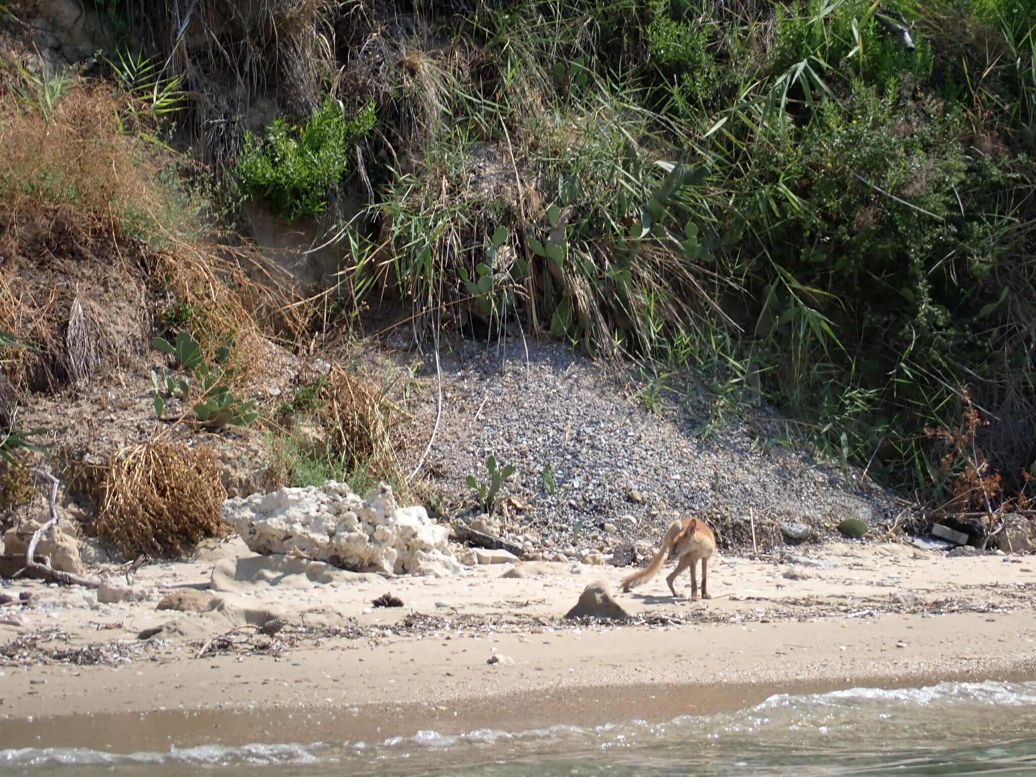 Κυριακή 3 Αυγούστου πρωί το γνωστό αλεπουδάκι της Νέας Καλλικράτειας στη Χαλκιδική τρέχει αμέριμνο στην παραλία στα Αμπελάκια.