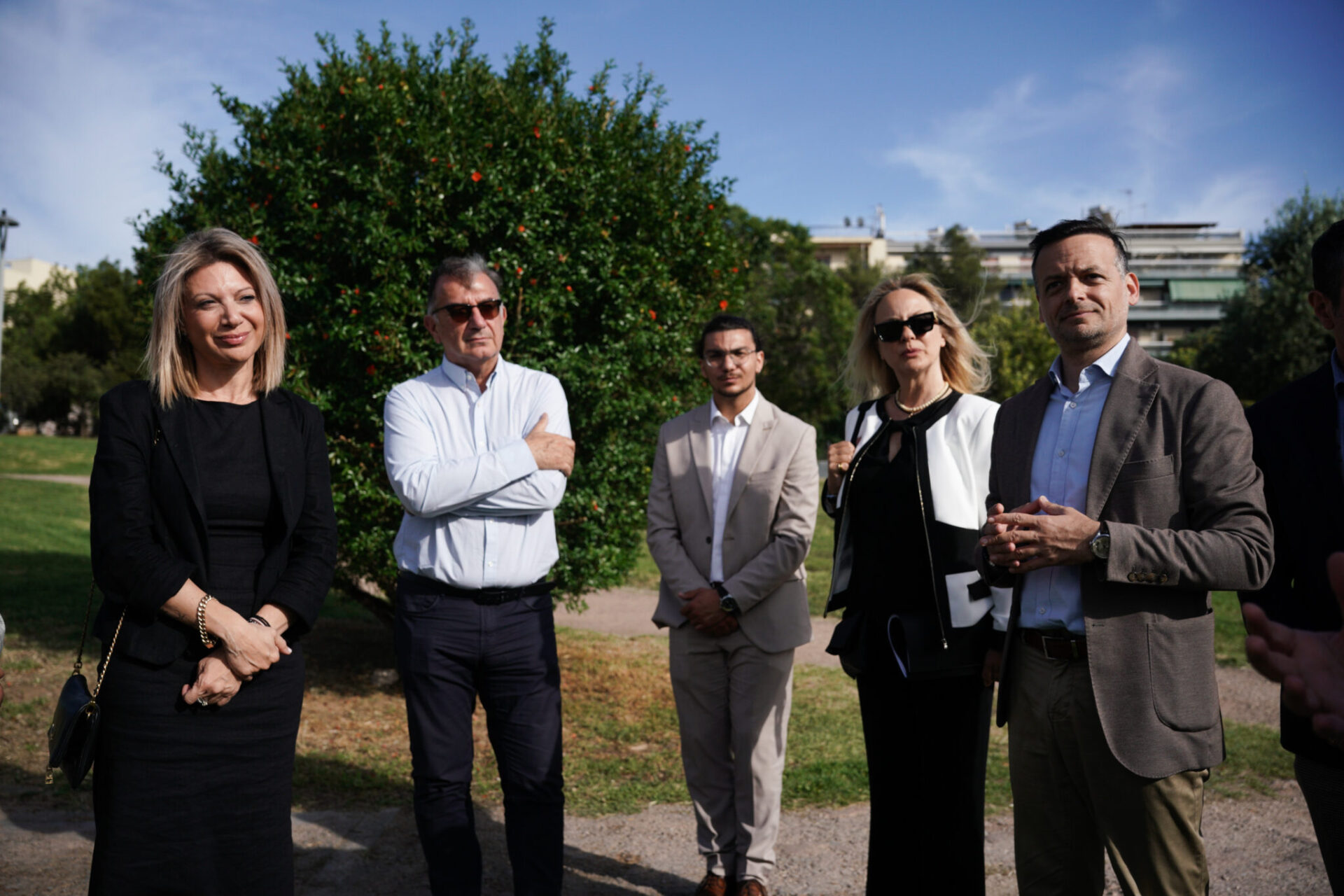 Ο Δήμαρχος Αθηναίων, Χάρης Δούκας, μαζί με την Πρόεδρο Συλλόγου Θυμάτων Τεμπών, Μαρία Καρυστιανού επισκέφτηκαν το πάρκο όπου θα τοποθετηθεί το γλυπτό-μνημείο με τα 57 πουλιά.