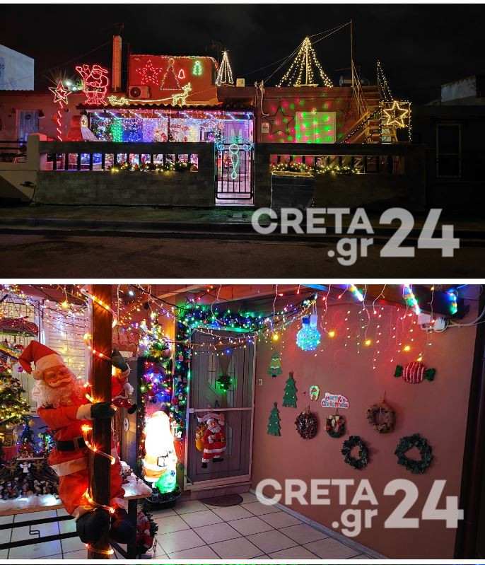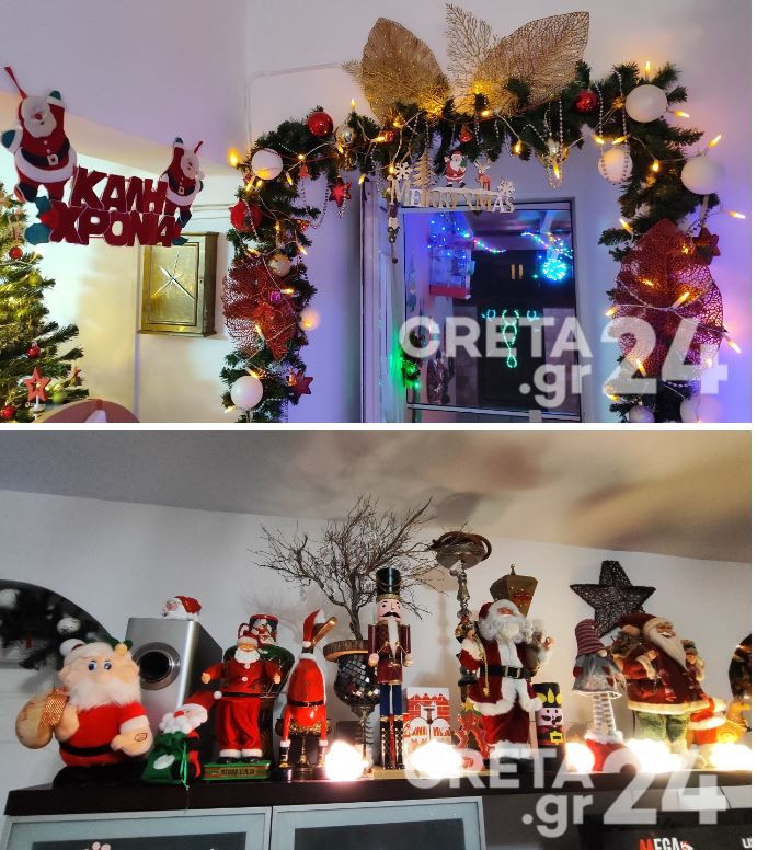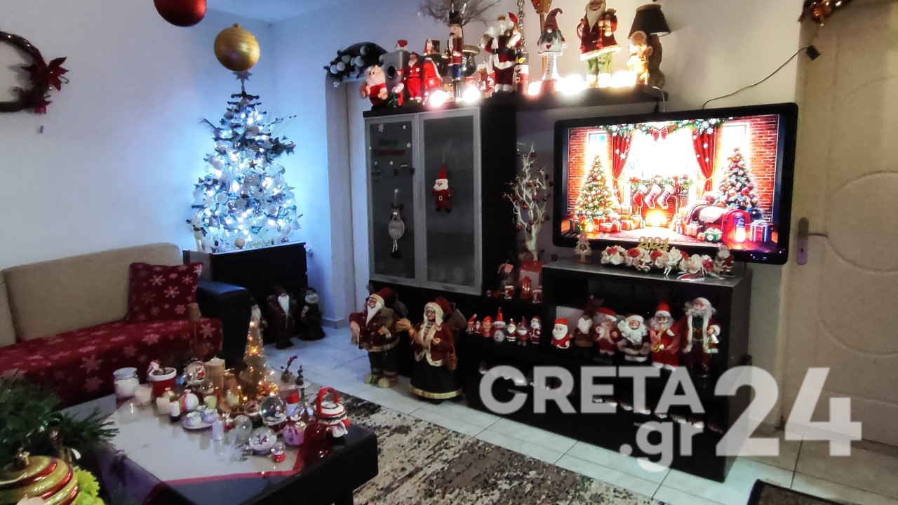 Έχει δεκάδες δέντρα, Άγιους Βασίληδες και χιλιάδες λαμπάκια και αποτελεί ένα από τα πιο στολισμένα σπίτια στην Κρήτη, αν όχι και το πιο στολισμένο.