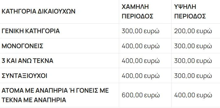 Συγκεκριμένα τα ποσά ενίσχυσης για την Χαμηλή Περίοδο (από την ημερομηνία έκδοσης της κάρτας – 30.04.2025 & 01.10.2025 – 31.12.2025) και την Υψηλή Περίοδο (01.05.2025 – 30.09.2025) διαμορφώνονται ως εξής: