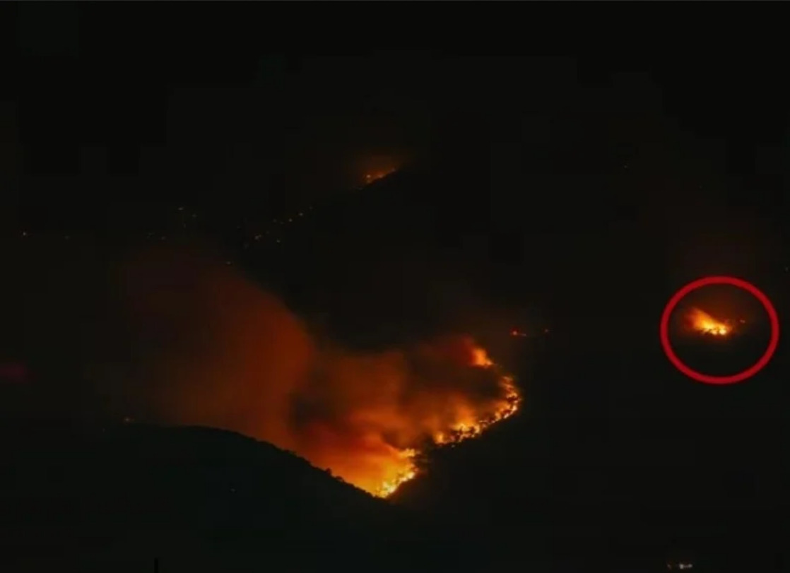 Στα πλάνα παρουσιάζεται χαρακτηριστικά με κόκκινους κύκλους η στιγμή που ξεσπούν νέες εστίες φωτιάς, που δεν είναι αναζωπυρώσεις, εκατοντάδες μέτρα μακριά από την κύρια εστία, πράγμα που υποδηλώνει εμπρησμό.