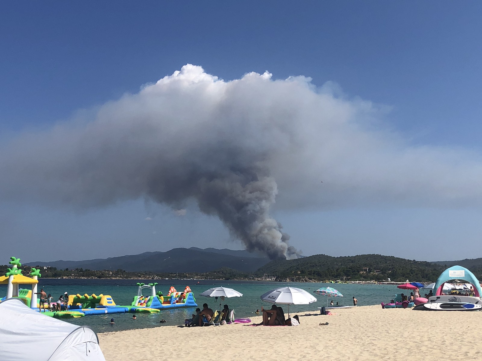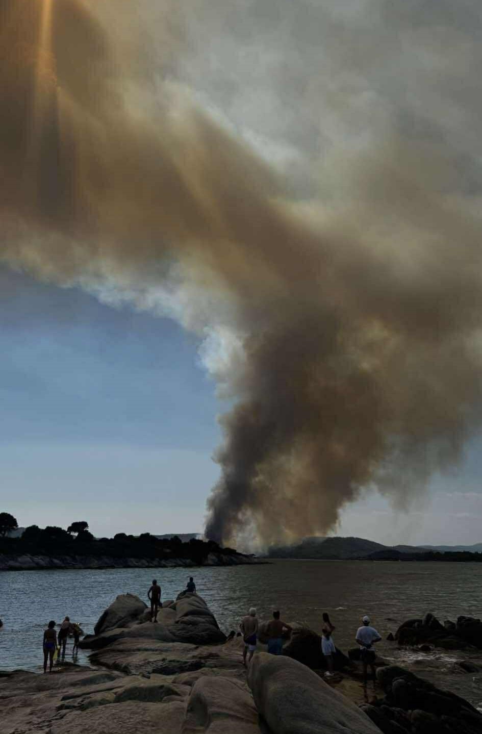 Νωρίτερα ήχησε το 112 στα κινητά τηλέφωνα όσων βρίσκονται στην περιοχή, καλώντας τους να απομακρυνθούν από τον Όρμο Παναγιάς προς Νικήτη. Επίσης, έγινε εκκένωση του κάμπινγκ «Ρέα».