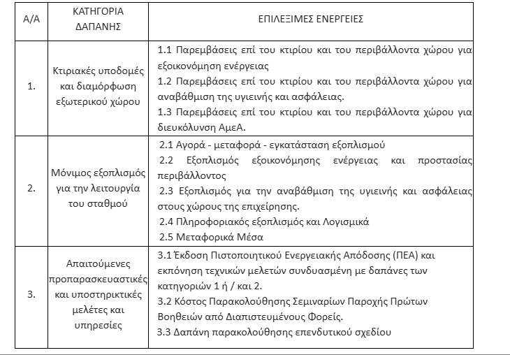 Στον πίνακα που ακολουθεί, αναλυτικά όλες οι επιλέξιμες δαπάνες