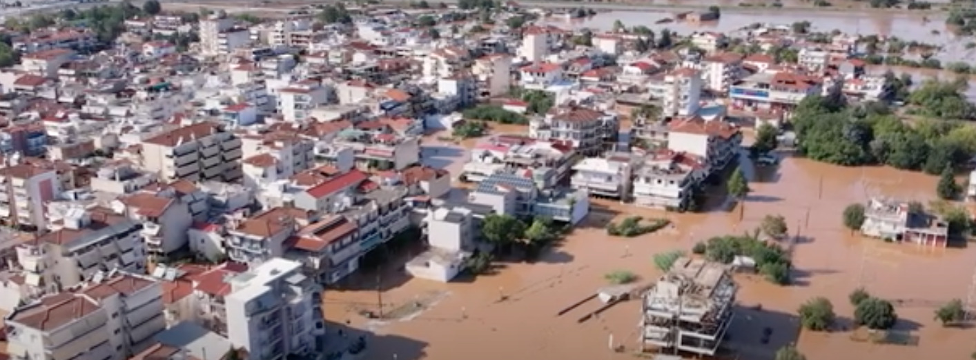Εναέρια λήψη 260 μοιρών που κοινοποίησε το meteo αποτυπώνει το μέγεθος της καταστροφής από τις πλημμύρες έξω από τη Λάρισα.